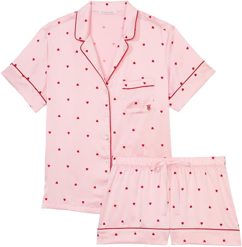 These cute silky pajamas have red hearts , it’s loose fit and easy to lounge on all day .