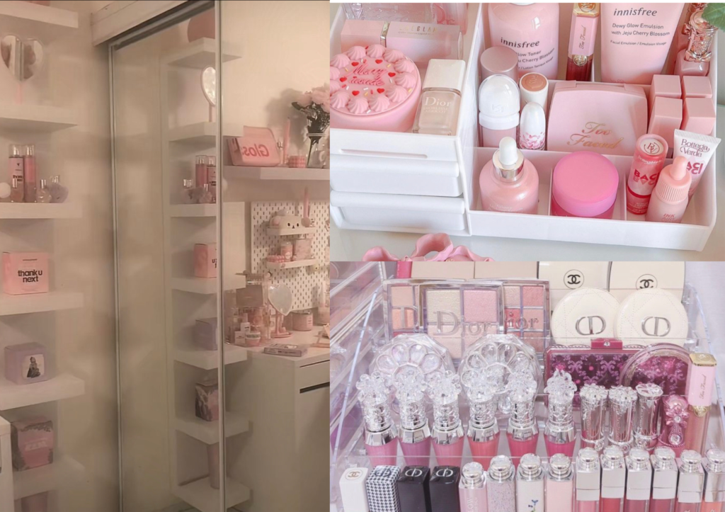When decorating for the princess plaza aesthetic you have to think luxury , hotel ,antique , ornate , girly and shabby chic. It’s really a more is more less is more situation. you want to have gold accents every where but with a ornate and antique feel. you can have them on mirrors , door or drawer knobs, bed head board , light fixatures, picture frames and sometimes on the wall or ceiling detailing. you want to one or more of the four base color in the room which are (pink, white, cream and black). after incorporating these you then can add any color you want.